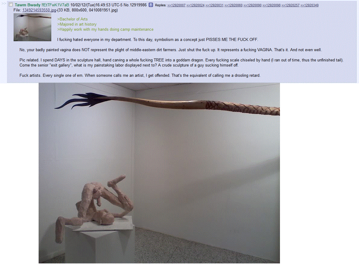 21.04.2017 - 21:49:52 <anon> Sure sounds like op is a drooling retard and doesn't understand what art is