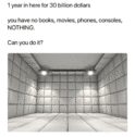 27.01.2024 - 09:15:44 <anon> One year in a padded room for 30 billion dollars. Could you do it?